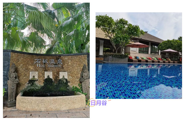我們帶著滿心歡喜與期待,乘著秋日的涼風(fēng)來到了本次旅游首站點-----日月谷溫泉度假村。進(jìn)入日月谷溫泉里我們暢泡著各式各樣、不同功效的溫泉,舒緩身心的疲憊。