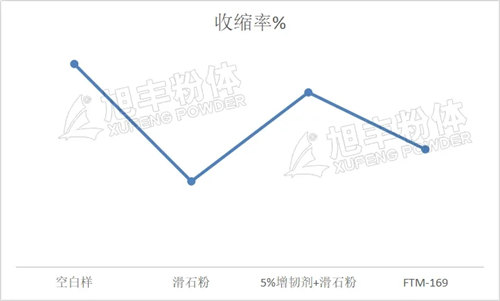 從上圖可以看出,F(xiàn)TM-169較添加5%增韌劑體系,具有較低的收縮率,同時相對純ABS樹脂來說,收縮率也有大幅度的下降,這說明FTM-169在ABS樹脂中具有良好的尺寸穩(wěn)定性。
