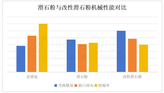 1、滑石粉與改性滑石粉機械性能對比