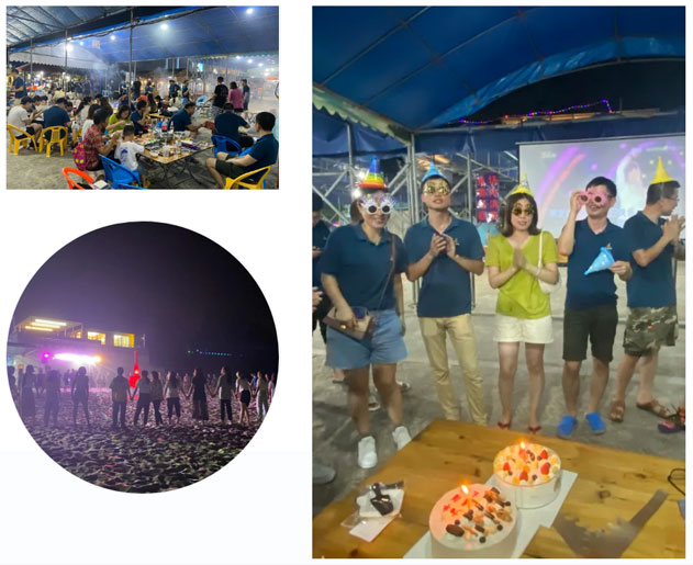 玩鬧過后我們升起篝火,盤起燒烤。在品嘗美味的同時,體驗露天KTV,一展美妙的歌喉。伴著優(yōu)美的歌曲、升騰的火焰、璀璨的煙花、歡快的步伐,讓夏日的酷熱和煩躁在這里得到盡情釋放。別樣的篝火晚會,別樣的海邊浪漫生日派對,相信第三季度的壽星們此刻幸福滿滿~